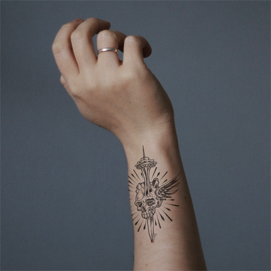 Seattle Skull Dagger Temporary Tattoo